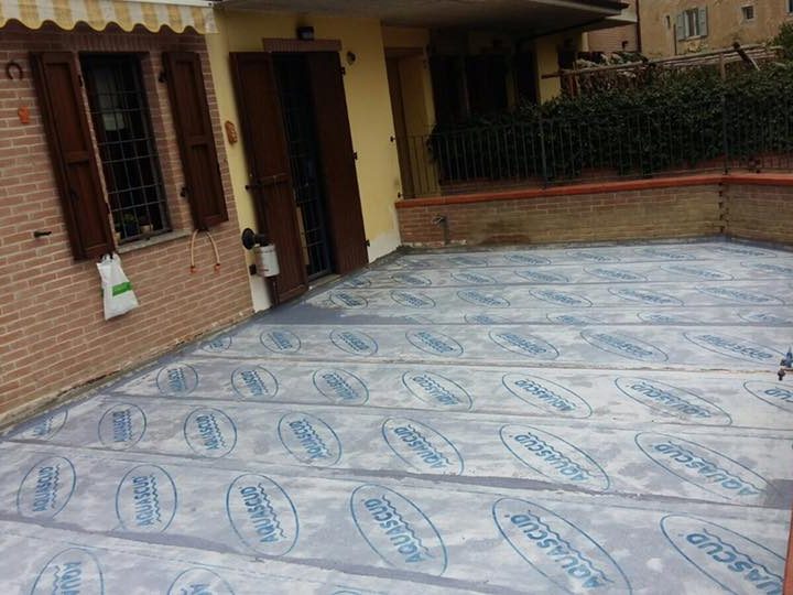 Opere di impermeabilizzazione su area cortiliva con sistema Aquascud 420 Volteco